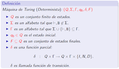 Máquina de Turing No determinista: La máquina de Turing No determinista es aquella que para un estado actual y el símbolo actual de la cinta, puede haber un número finito de movimientos a elegir. Por lo tanto, la regla de transición d de dicha máquina, satisface